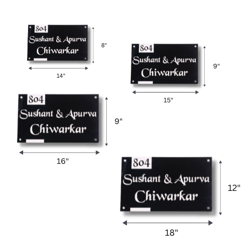 A sleek black acrylic nameplate with elegant white lettering and a clean modern layout. Perfect for apartments and homes that prefer a simple and classy entrance look.