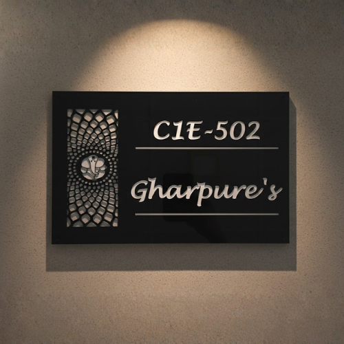 The raised 3D lettering ensures clear visibility and adds depth to the overall design, giving it a premium finish. Its clean rectangular layout blends effortlessly with modern apartments, villas, and contemporary interiors.