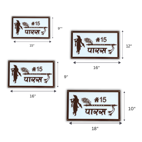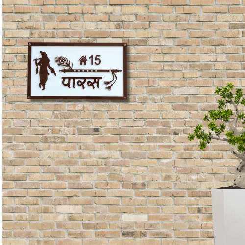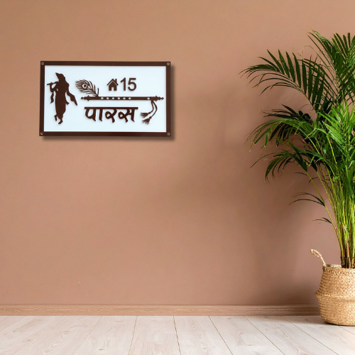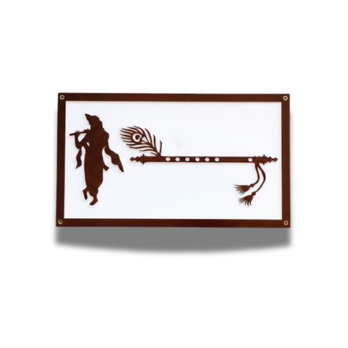 Crafted with a premium finish and detailed artwork, the flute and decorative elements add an artistic and devotional touch to your entrance. The raised 3D lettering enhances visibility while giving the nameplate a rich and refined appearance.